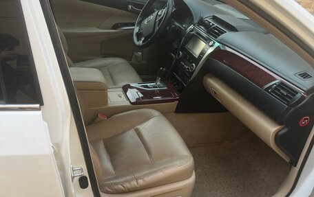 Toyota Camry 2014 года выпуска. Автомобиль белого цвета, с пробегом 180 тысяч километров, в ПТС три собственника. Объем двигателя составляет 2 литра и мощность 148 лошадиных сил. Тип двигателя - бензин, а коробка передач автоматичес...